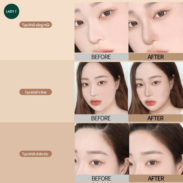 - Sản phẩm sử dụng để tạo khối chân tóc, vùng mũi, cằm, xương quai hàm, vùng má… giúp gương mặt trở nên thon gọn và ấn tượng hơn.