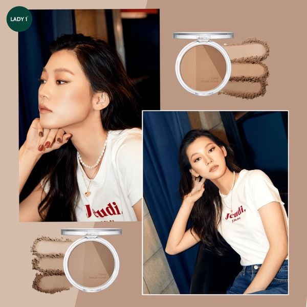 Sản phẩm gồm 3 màu với độ đậm tăng dần, bao gồm: xám nhạt, tro nhạt và nâu tro. Tùy thuộc vào sở thích, nhu cầu trang điểm khác nhau mà các nàng có thể mix các màu lại với nhau để tạo khối tự nhiên cho sống mũi, thái dương, chân tóc và vùng má.